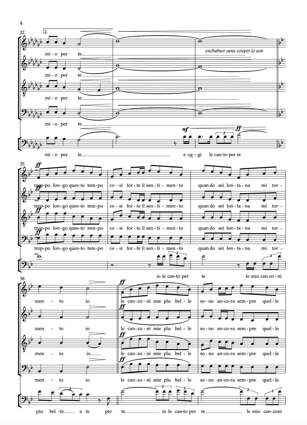 | Io le canto per te | SATBB | oui | balade | Fl. Pagny | Texte en italien. Avec soliste Baryton. |